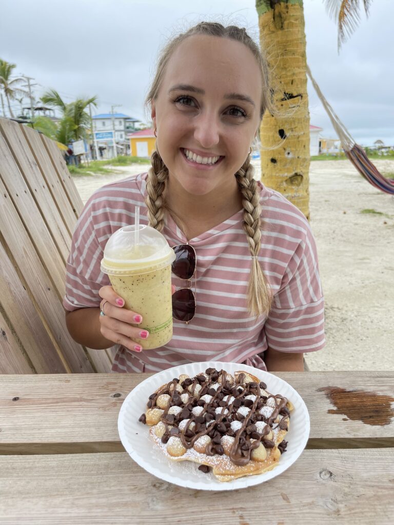 We ordered a pineapple-passion fruit smoothie, some of their iconic hot, fresh, cinnamon-sugar donuts and a bubble-waffle complete with Nutella and chocolate chips. I know, it sounds more like dessert than breakfast, and if that’s not your jam, they have plenty of savory things too. Everything we tasted was delicious, and we so badly wanted seconds. Instead we thanked them and went on our way.