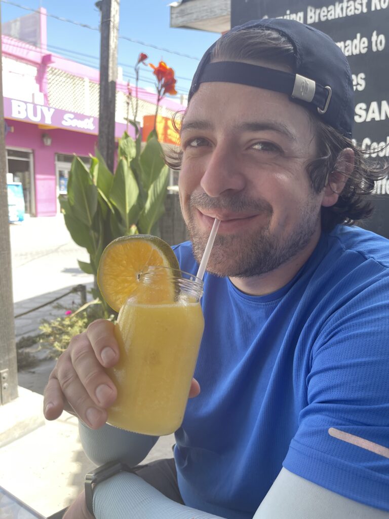 Our first morning, we walked down to the main street south of town and went to a place called The Baker which had raving reviews. I’ll be honest, it was some of the best breakfast I’ve had. We ordered croissant breakfast sandwiches, cinnamon rolls, and a pineapple-mango smoothie, all handmade and fresh. It was delicious.